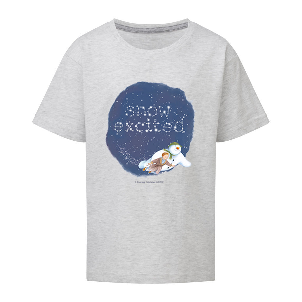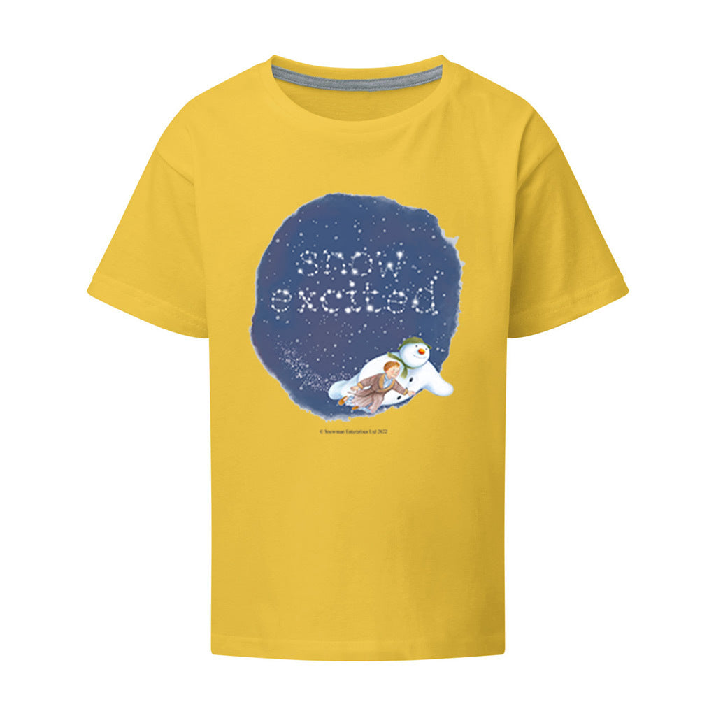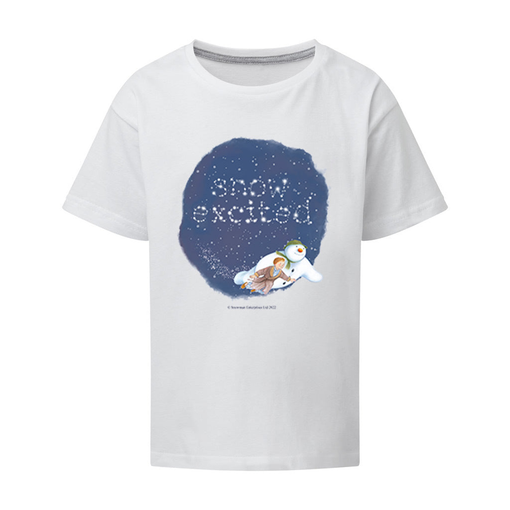 Introducing the Snow Excited Snowman T-Shirt! This festive piece is perfect for any fans of The Snowman by Raymond Briggs. Made from 100% cotton, it's soft, comfortable and sure to keep you warm all winter long. Plus, it's proudly printed in the UK, so you know it's made with quality in mind. Whether you're looking for a new Christmas t-shirt or simply a fun shirt to show your love for The Snowman, this is the perfect option for you. So don't wait - order yours today!
