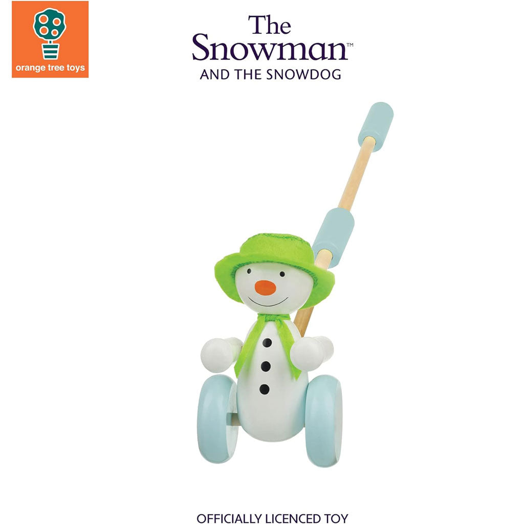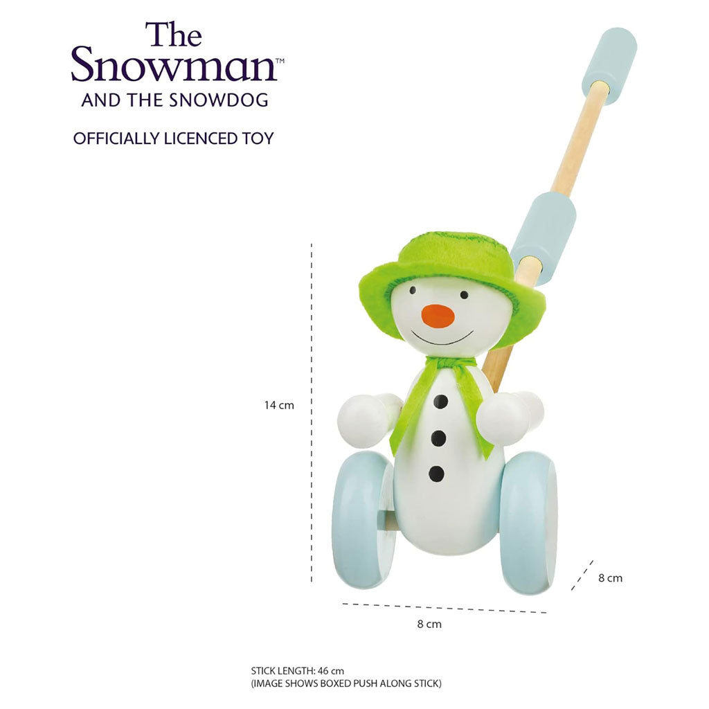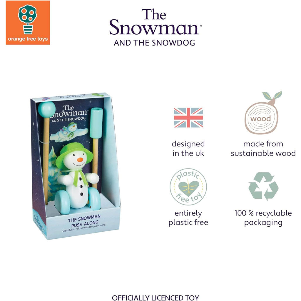 OFFICIAL LICENSED THE SNOWMAN AND THE SNOWDOG GIFTS:: Make friends with this beautifully hand crafted traditional Snowman push along walker toy. Painted in white, green and blue this cute Snowman toy will follow you around as you push him along. Perfect to encourage those first steps and provide a bit of stability when playing along and finding your feet!