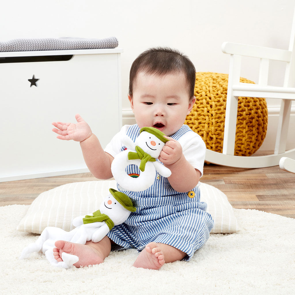 The softest, most soothing fabrics make these toys perfect for little hands to hold, with the chime rattle encouraging sensory play. The comforting Snowman blanket makes a wonderful bedtime or naptime companion for any baby. Suitable from birth, this gift set is sure to become a treasured keepsake for years to come. Thanks for choosing The Snowman Gift Set!