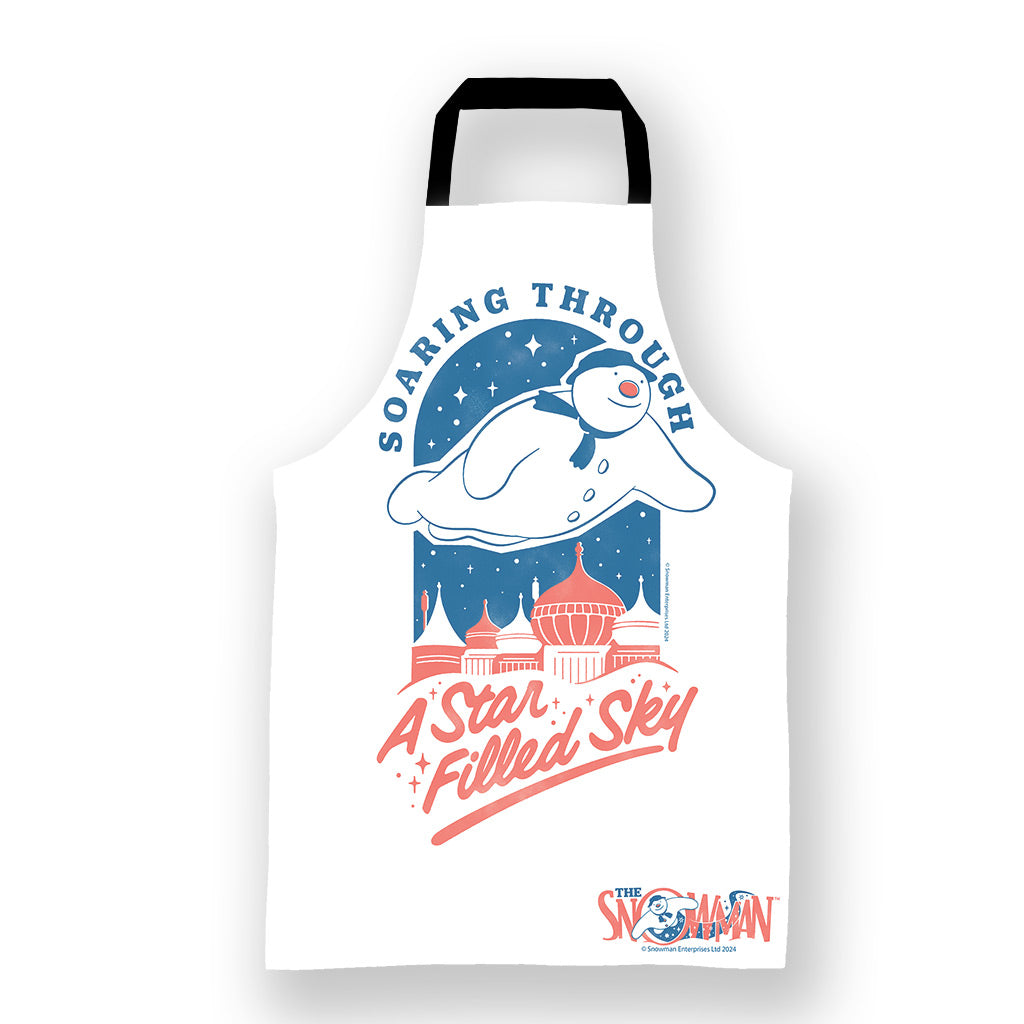Bring the timeless magic of The Snowman into your kitchen with the enchanting "Soaring Through a Star-Filled Sky Apron." Perfect for fans of all ages, this apron captures the magic of The Snowman and the beauty of a star-lit night, inspiring festive joy with every wear.