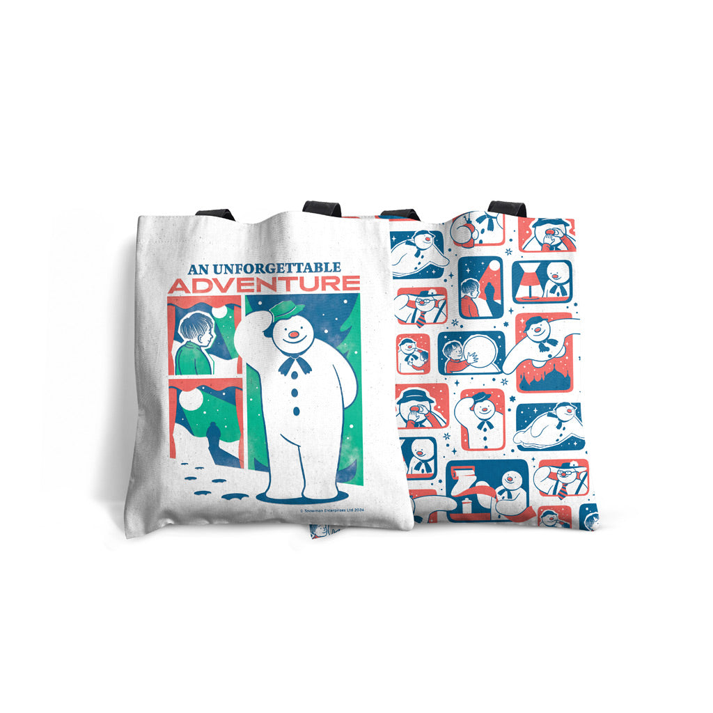 Measuring 40cm x 40cm, this high-quality tote bag is made from 100% cotton, providing durability and an eco-friendly option for everyday use. Proudly printed and produced in the UK, its edge-to-edge print brings *The Snowman*'s adventure to life with vibrant, lasting colours. Perfect as a gift or a seasonal treat for yourself, this tote bag is sure to make an impression wherever you take it.