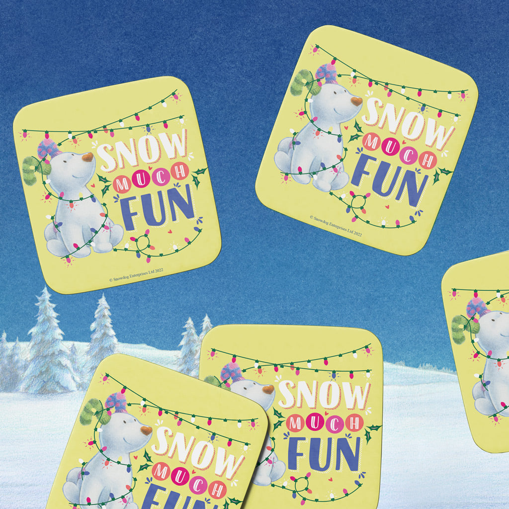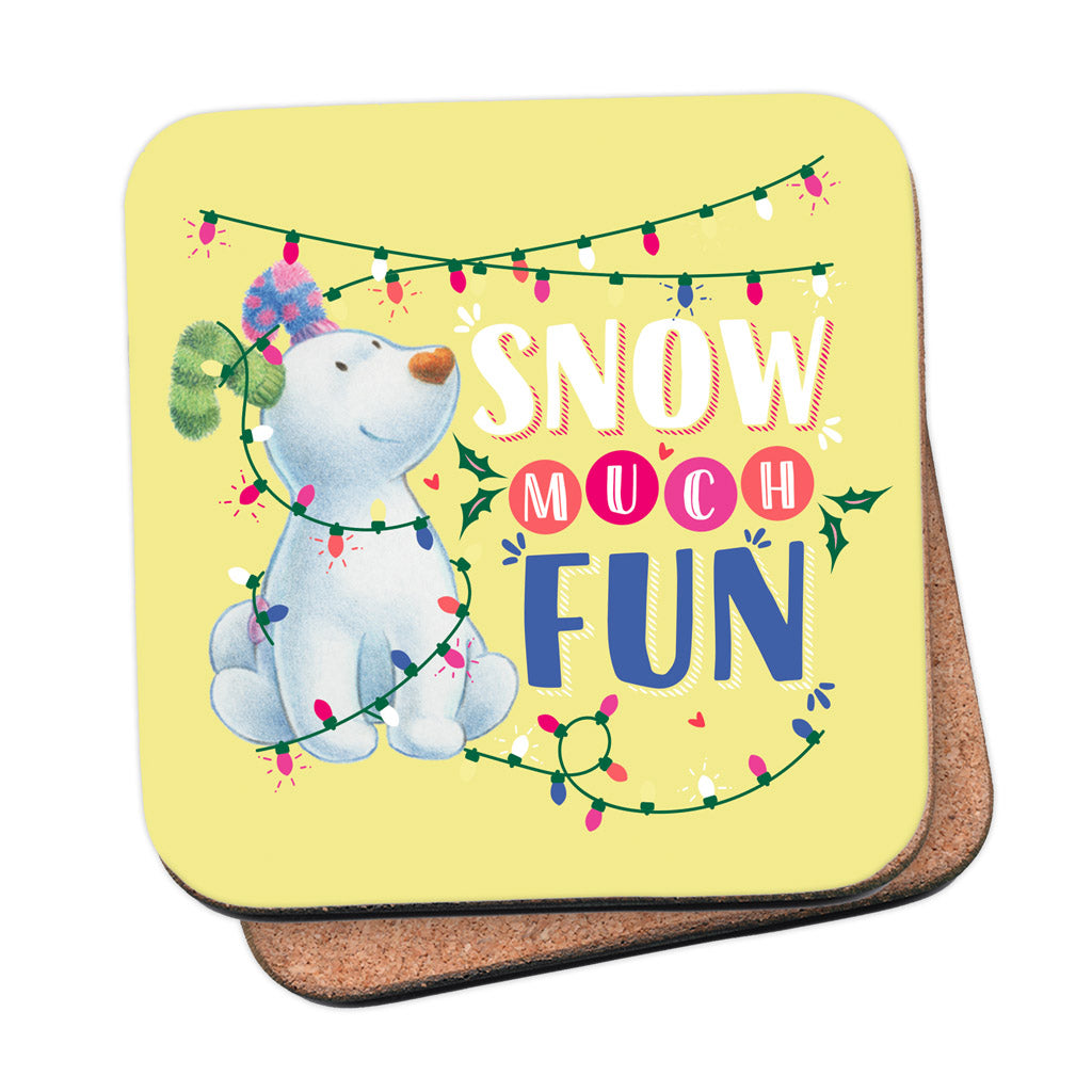 Are you in search of a unique way to add extra winter cheer to your home? Or maybe you're looking for a thoughtful gift for the holiday season? Look no further than the Snow Much Fun Yellow Coaster! This vibrant and fun coaster measures 10cm by 10cm and features an adorable snowdog, decked out in Christmas lights. Constructed from high-quality materials, this durable coaster not only looks great ‚¬œ it can also handle all types of spills with ease. Thanks to its cork-backed non-slip design, it will stay put even after the most chaotic dinner parties! Plus, its easy wipe clean surface means that no dirt or marks will build up on top. Best of all, this coaster is proudly produced right here in the UK. So hop on over to make sure you get your very own Snow Much Fun Pink Coaster today! Get one as a special treat for yourself or give one as a festive present ‚¬œ either way, you can't go wrong. Make your home look fun and festive with this charming coaster just in time for the winter holidays!