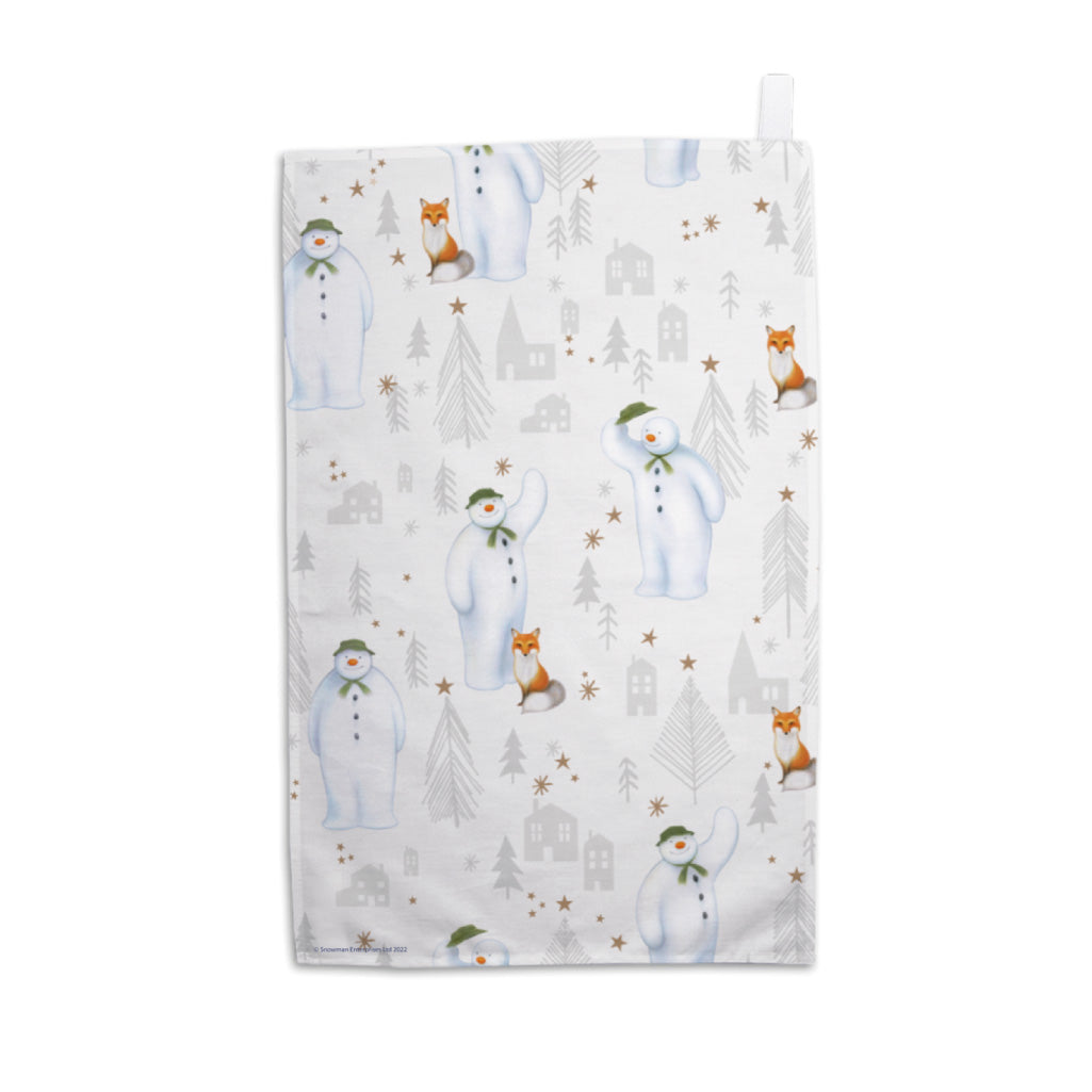 Alpine Adventures Snowman and Fox White Tea Towel