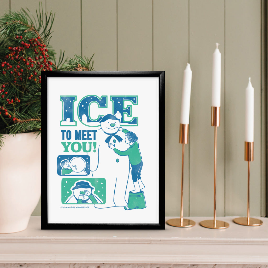 Bring the festive charm of *The Snowman* into your home or office with the "Ice to Meet You!" Art Print, a delightful piece that captures the magic of winter. Perfect for adorning any wall, this high-quality print is available in multiple sizes, including 11x14 inches with two elegant framed options, making it a versatile addition to your seasonal décor.