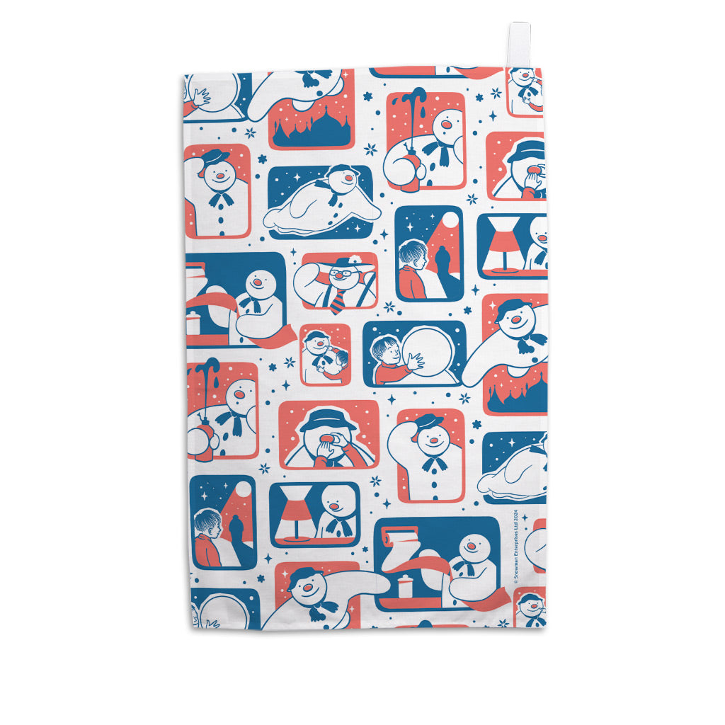 Bring the enchanting world of *The Snowman* into your kitchen with the "Snowman Scenes" Tea Towel. Made from 100% cotton and featuring charming scenes from *The Snowman*'s magical adventure, this tea towel is perfect for adding a touch of festive joy to your kitchen while keeping practicality in mind.