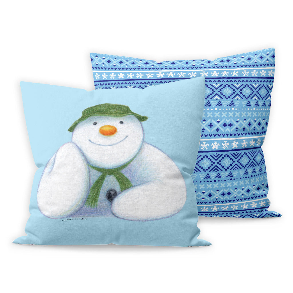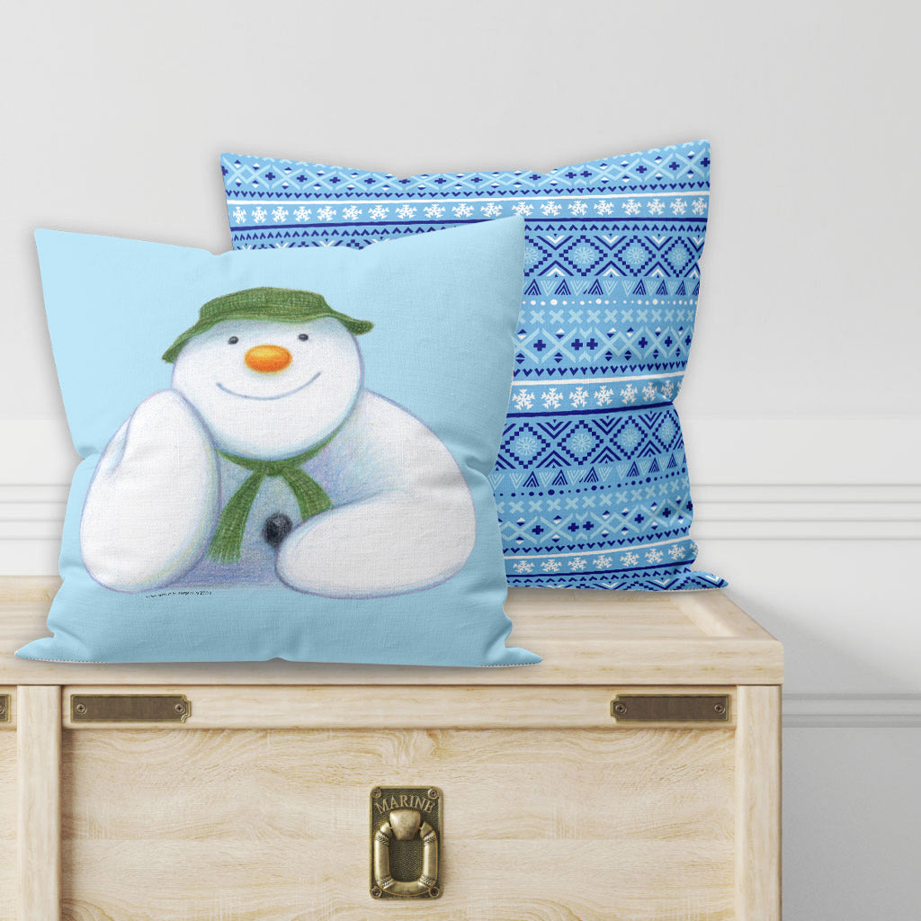 Featuring the iconic Snowman from Raymond Briggs' classic Christmas story, this soft-touch faux suede cushion is sure to get you in the holiday spirit. Measuring 40cm x 40cm, it's the perfect size to use as a decoration or to cuddle up with on cold winter nights. Plus, it comes filled with a plump microfibre inner for a lasting shape. So why not bring some Christmas cheer to your home with this lovely cushion? Proudly printed and produced in the UK.